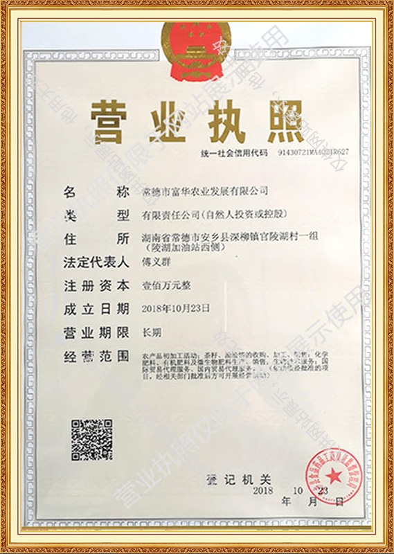 Changde fuhua agricultural development co. LTD was formally established in October 2018, the registered capital of RMB 1 million, is located in the hunan province anxiang deep liu town, convenient transportation, near AnXiang HangRui highway export, the company is one specialized is engaged in the tea meal, tea seed powder and tea saponin and tea meal particles agricultural company, mainly exported to Thailand, Vietnam, India, Malaysia, Taiwan and other regions, domestic sold to guangdong, hubei, zhejiang, fujian, Shanghai, jiangsu, anhui, hainan, guangxi, the company based on sincerity, to the quality strives for the development.